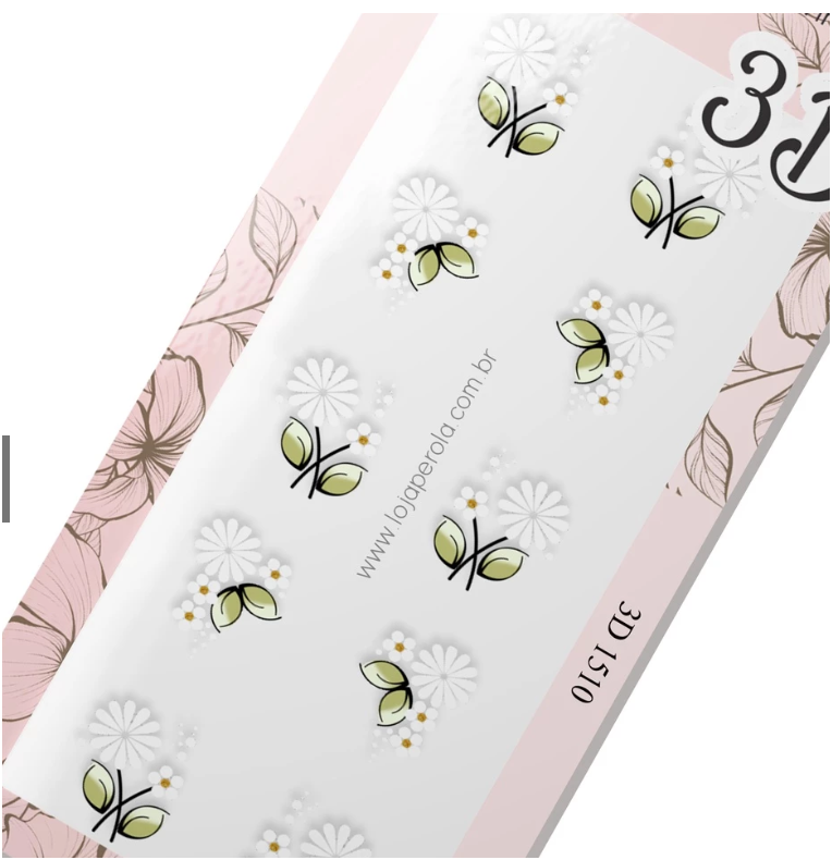 Adesivo 3D de Unha- Margaridinhas Brancas- 3D 1510