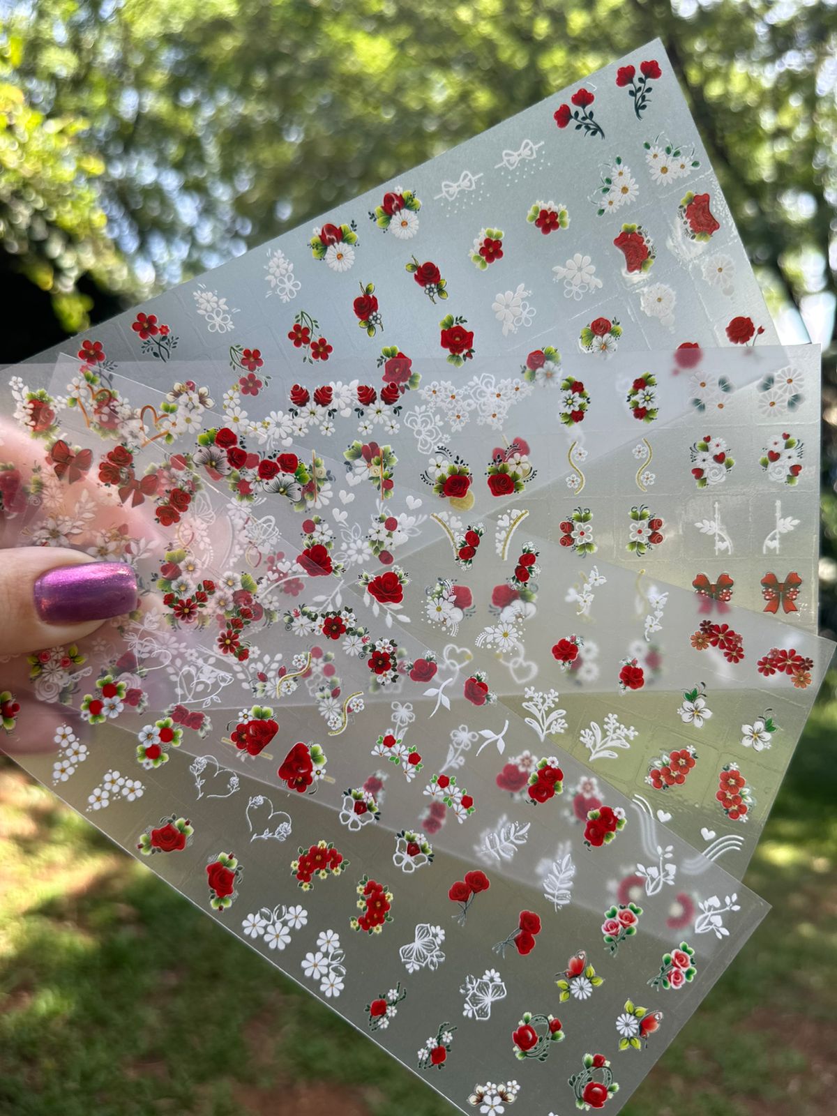 Kit contendo 30 cartelas de Peliculas para unhas, cores VERMELHAS E BRANCAS