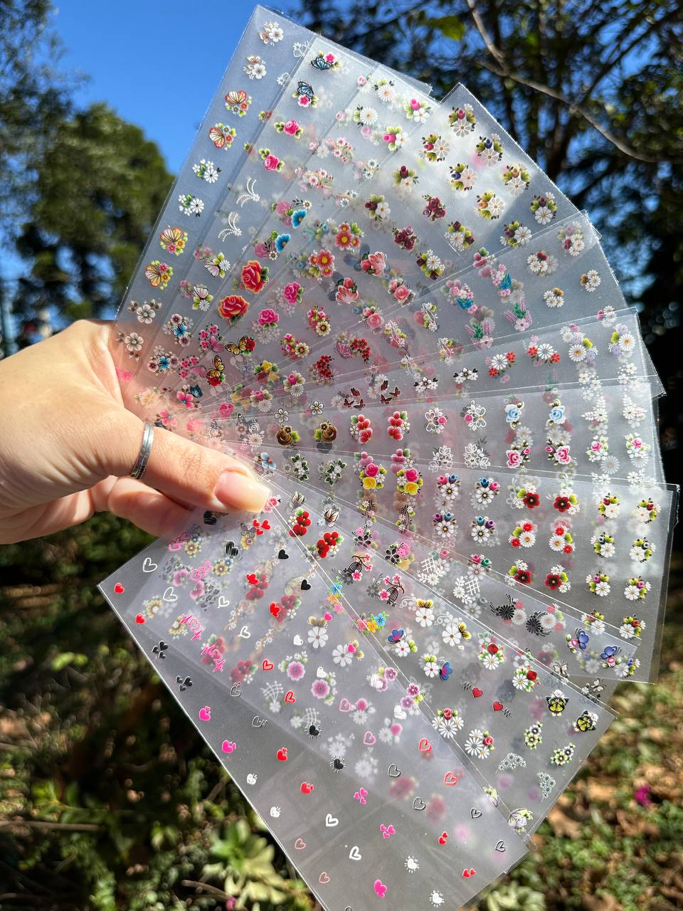 São os modelos mais atuais, SUPER VARIADOS, escolhidos um à um. Totalizando 660 unidades de peliculas ( Ou seja, pode ser aplicado em até 660 unhas) 60 cartelas de películas com 10 unidades cada (Enviamos O modelo exato da foto) e mais 60 unidades de BRINDE