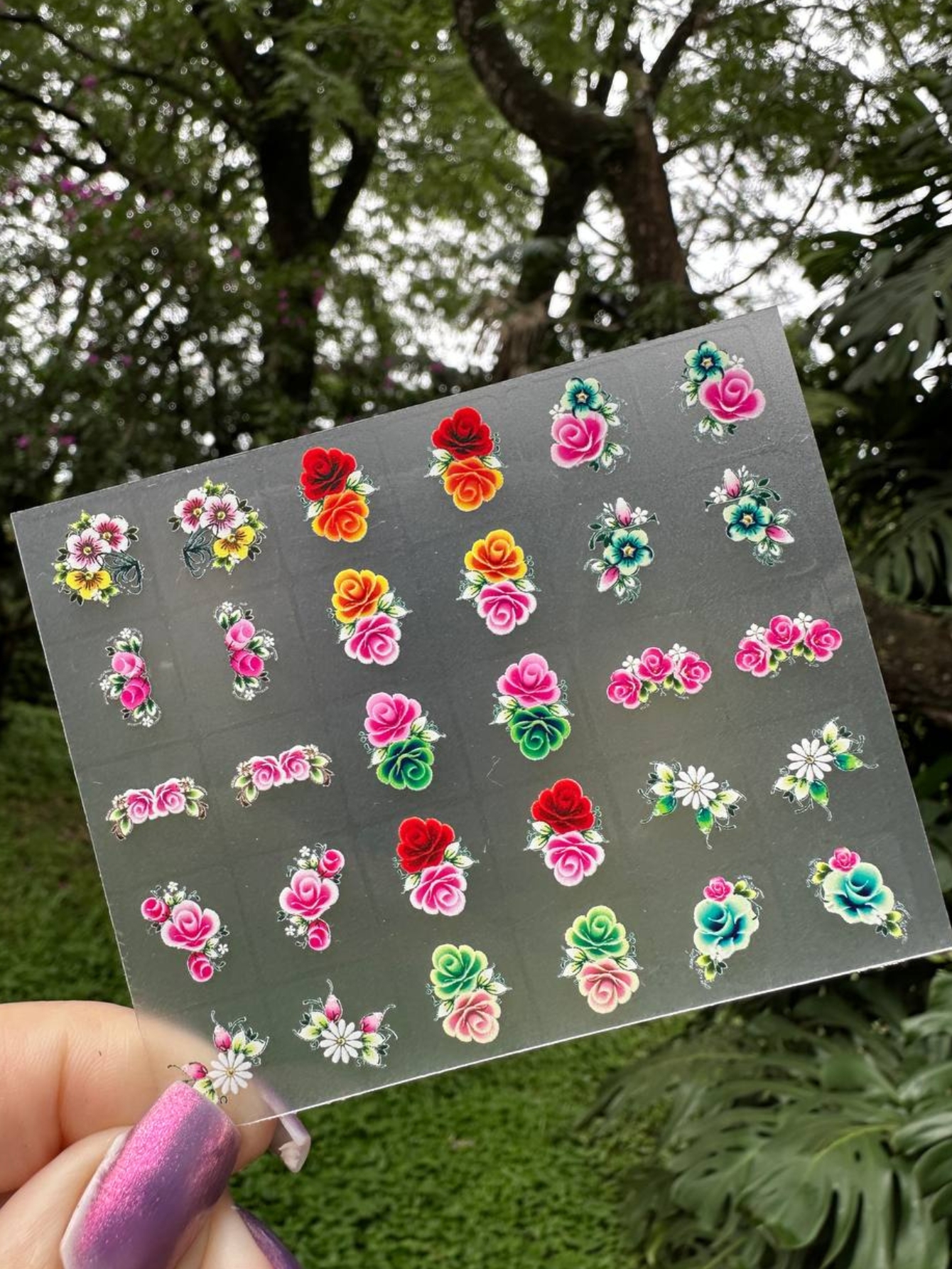 Mini Cartelão de Películas para Unhas 30 unidades- Flores Coloridas